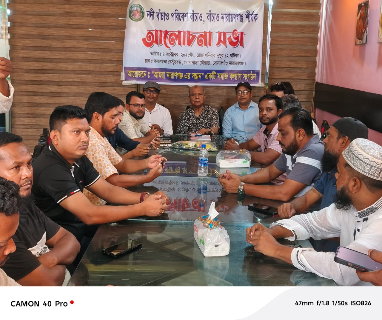 “আমরা নারায়ণগঞ্জের সন্তান” সংগঠনের উদ্যোগে নদী ও পরিবেশ রক্ষায় আলোচনা সভা অনুষ্ঠিত